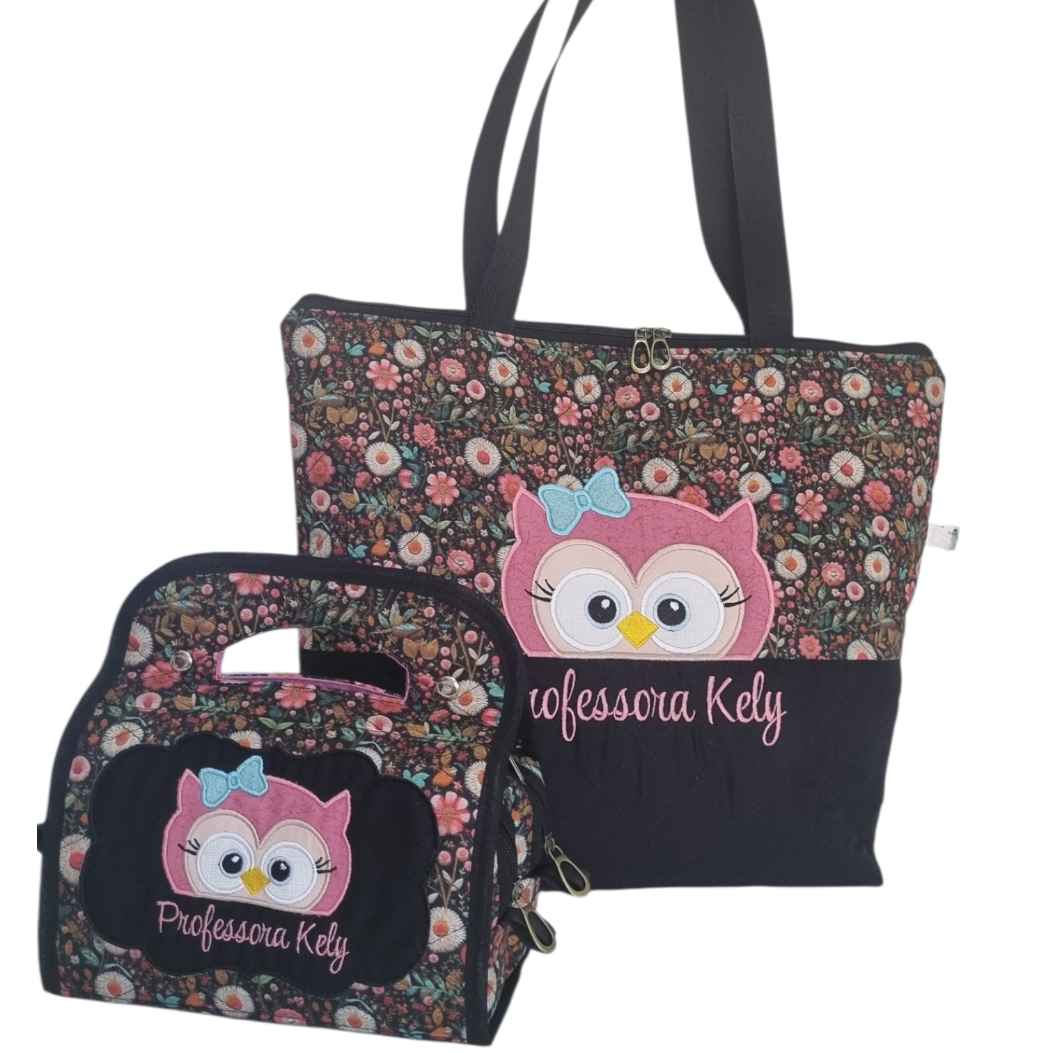 Bolsa confeccionada em tecido, com fechamento em zíper e bolsinhos internos!