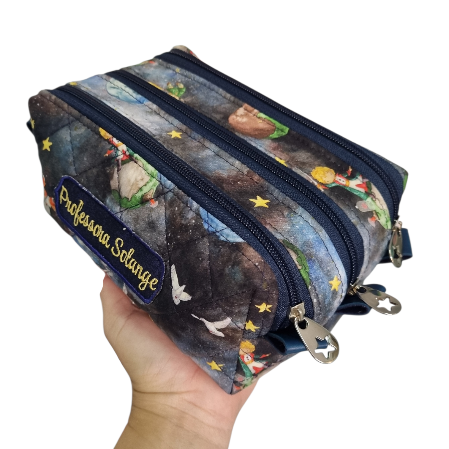 O estojo box 3, conta com 3 compartimentos independentes, sendo usado como estojo escolar ou necessaire multiuso.