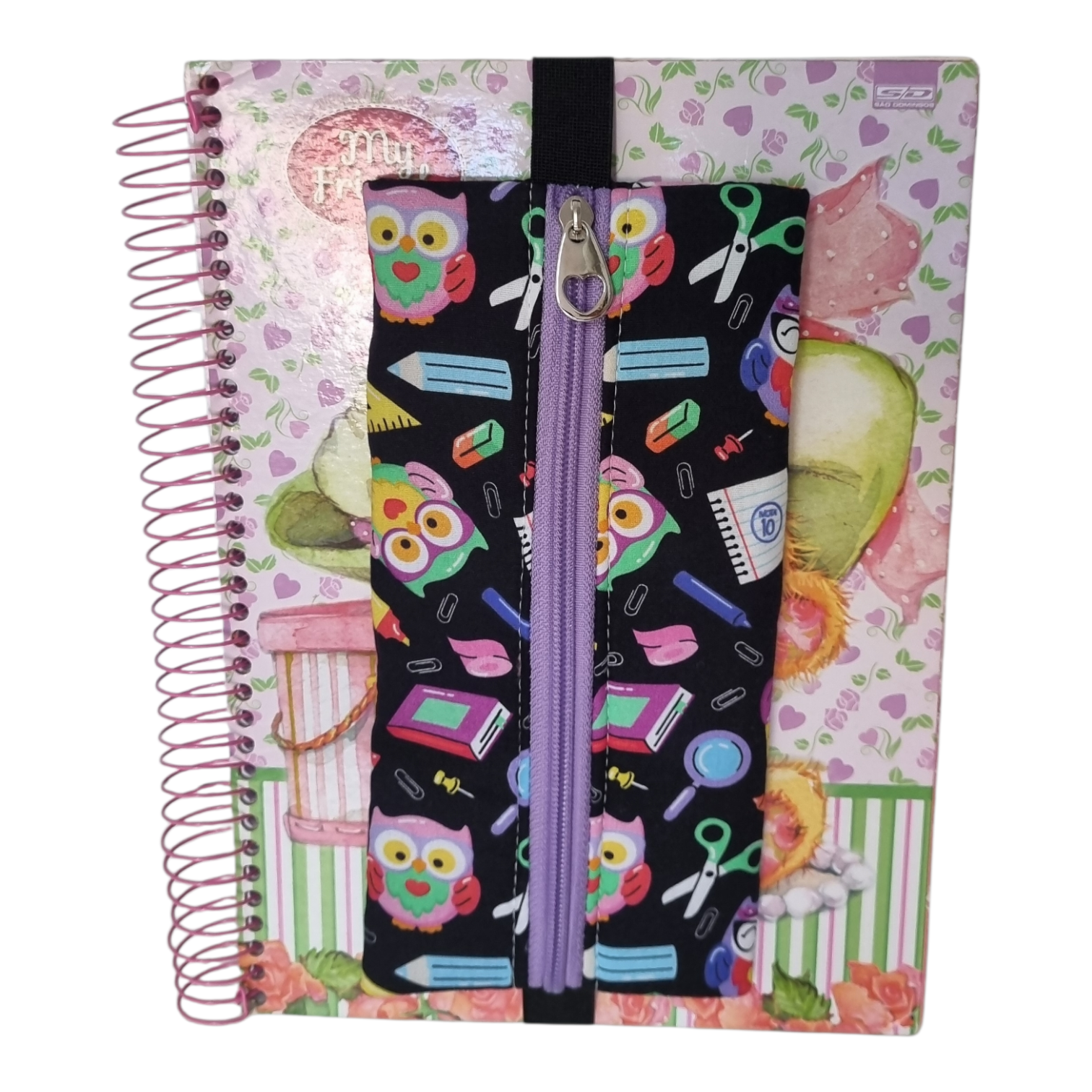 Além de guardar canetas, bloco de notas e até o celular, ele pode ser usado como marca página, facilitando sua leitura e estudos.