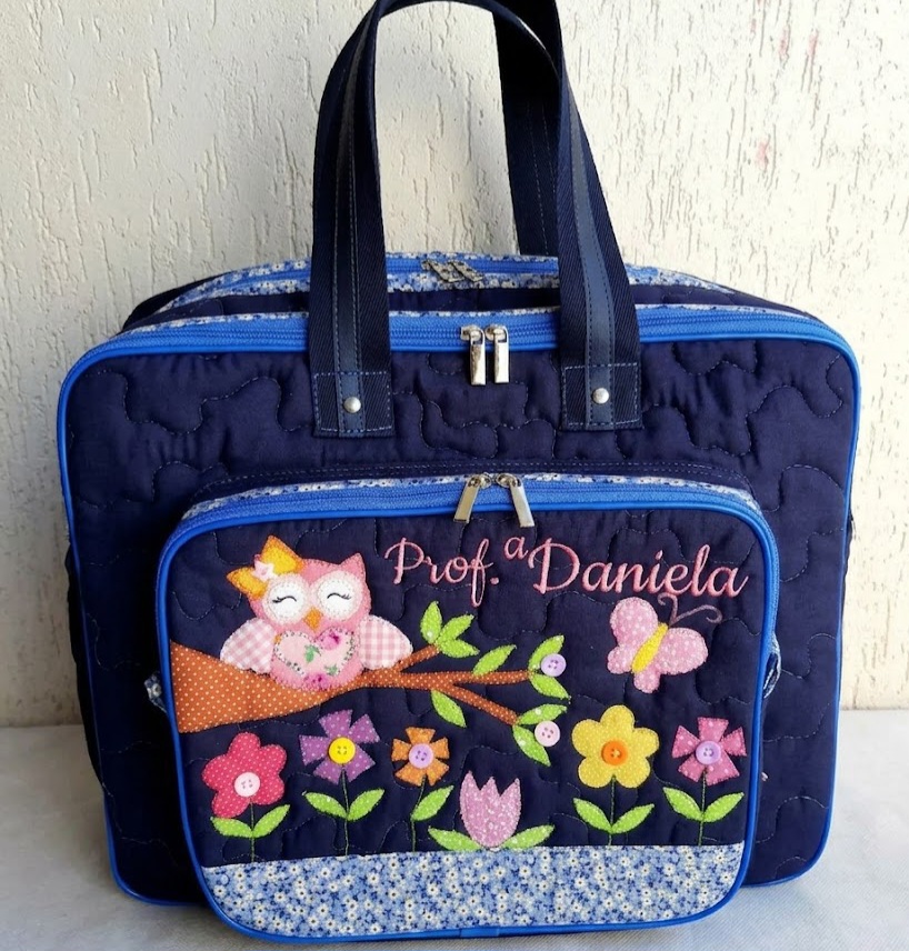 Bolsa com divisões corujita azul